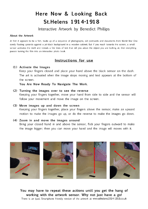 Over the last few months of 2014 Artist Benedict Phillips travelled with Archaeologist John Oxley and Sound Recordist Glenn Boulter between seven libraries (Rainford, Billinge, Garswood, Haydock, Eccleston, Moss Bank and Central Library) all in the north of St Helens. During these travels they met with many people who have small family archives of photographs, objects and documents from WW1.