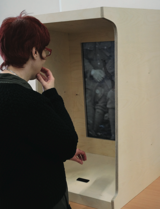The presentation of the Artwork was partly inspired by the idea and look of the microfiche machines that have been used for over one hundred years in UK libraries. Unlike a traditional microfiche, this artwork has been built by bringing together a mix of computer hardware, games technology and WebGL (Web Graphics Library), and a JavaScript API for rendering interactive 3D computer graphics within a web browser, which is still considered an experimental platform.